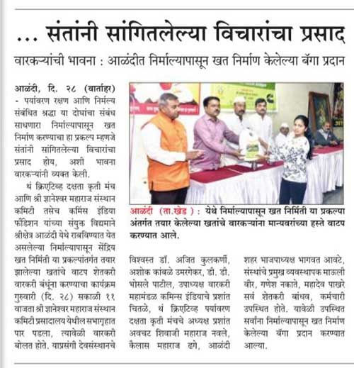ज्ञानेश्वर माऊलींच्या समाधीचे दर्शन घेऊन कृतकृत्य होण्यासाठी संपूर्ण देशभरातून हजारो भाविक श्रीक्षेत्र आळंदी येथे दररोज भेट देत असतात. येणारे भक्त समाधीस्थळी हार व फुले अर्पण करतात. या निर्माल्याची यांची विल्हेवाट लावण्याची यंत्रणा विकसित नसल्याने पर्यावरणाची हानी होणे या सोबत भाविक भक्तांची श्रद्धा पायदळी तुडवली जाणे अशी दुहेरी समस्या इथे होती. याचबरोबर भोजनप्रसादासाठी वापरण्यात येणाऱ्या ताट व वाटी धुण्यासाठी मोठ्या प्रमाणात पाणी वापरले जायचे. या ऐवजी आता देवस्थान संस्थानने नैसर्गिक पानांपासून बनवलेल्या पत्रावळी आणि द्रोण वापरण्यास सुरुवात केली आहे. मात्र त्यांची योग्य विल्हेवाट कशी लावायची हा प्रश्न होता. या समस्येवर मात करण्यासाठी थं क्रिएटिव्ह पर्यावरण दक्षता कृती मंच, कमिन्स इंडिया फाउंडेशन व श्रीज्ञानेश्वर महाराज संस्थान कमिटी आळंदी यांचे संयुक्त विद्यमाने एप्रिल २०१९ पासून निर्माल्य तसेच द्रोण आणि पत्रावळींपासून सेंद्रिय खत निर्मिती प्रकल्प सुरू करण्यात आला आहे. याची सुरुवात एप्रिल २०१९ मध्ये करण्यात आली आहे.
